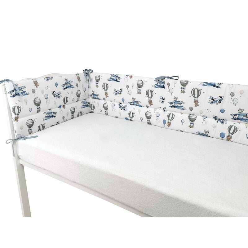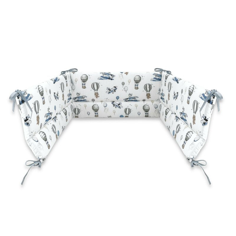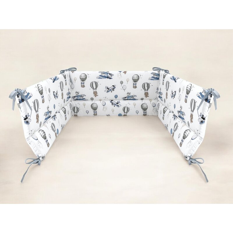 Aparatoare pentru patut, MimiNu, Din bumbac certificat Oeko Tex Standard 100, 180x30 cm, Cu panglici, Blue Plane