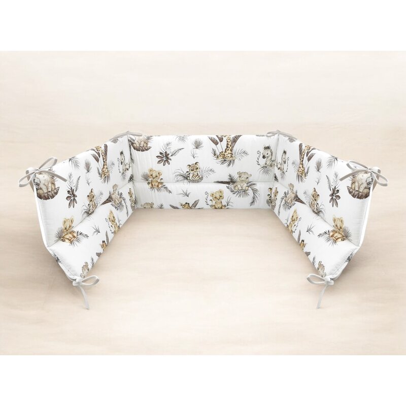 Aparatoare pentru patut, MimiNu, Din bumbac certificat Oeko Tex Standard 100, 180x30 cm, Cu panglici, Savanna