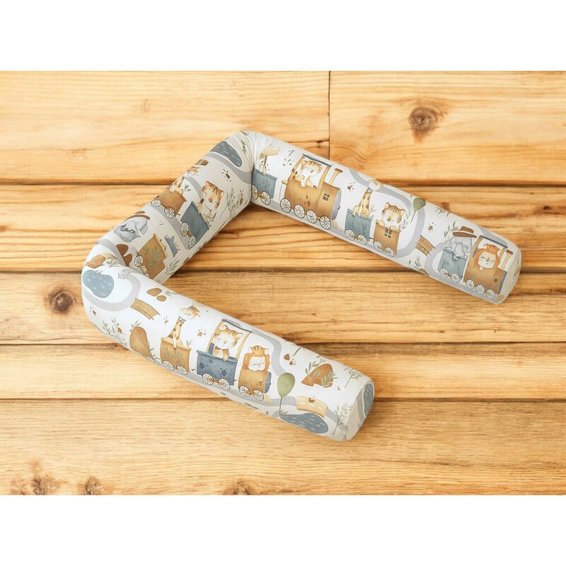 Aparatoare pentru patut, MimiNu, Tip rulou, Cu husa detasabila, Lungime 180 cm, Din bumbac certificat Oeko Tex Standard 100, Design, Zoo in train