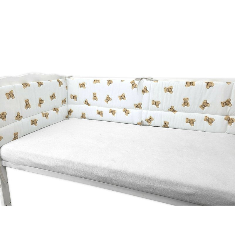 Aparatoare pentru patut, Qmini, Din bumbac certificat Oeko Tex Standard 100, 180x30 cm, Cu panglici, Teddy Toys
