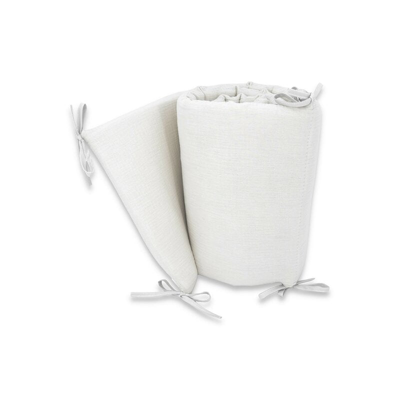 Aparatoare pentru patut, Qmini, Din muselina dubla, 180x30 cm, Din material certificat Oeko Tex Standard 100, Cu panglici, Cream