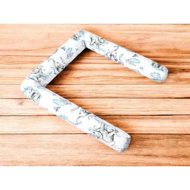 Aparatoare pentru patut, Qmini, Tip rulou, Cu husa detasabila, Lungime 180 cm, Din bumbac certificat Oeko Tex Standard 100, Elephants on Rainbow Blue