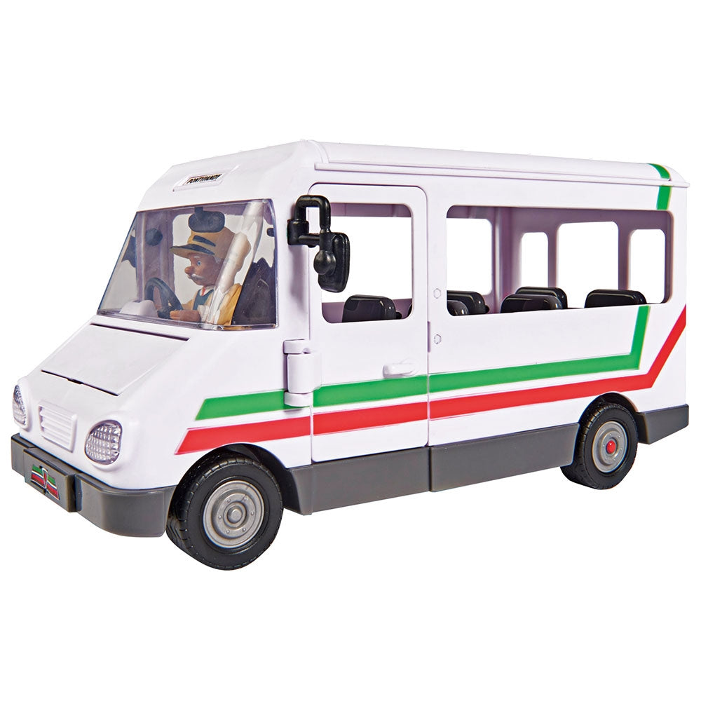 - Vehiculul are un loc pentru sofer si 6 pasageri, o usa care se deschide, o capota cu compartiment pentru accesorii si un acoperis detasabil, astfel se pot aseza cu usurinta figurine in vehicul