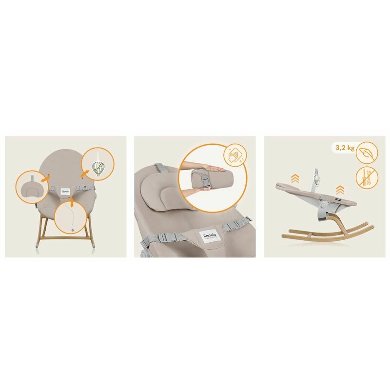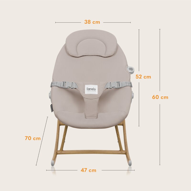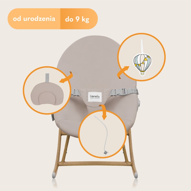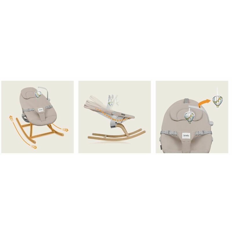 Balansoar, Lionelo, Dalia, Inaltime reglabila in 2 pozitii, Cu husa detasabila, Bara de jucarii, Pana la 9 kg, Usor, 3.2 kg, Bej