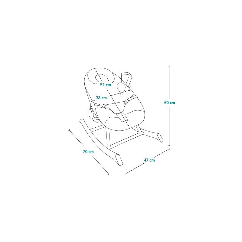 Intreaga structura se monteaza printr-un sistem de clic, astfel incat parintele nu are nevoie de alte unelte suplimentare. Greutatea foarte mica a produsului - doar 3,2 kg - face ca balansoarul sa fie usor de mutat.
