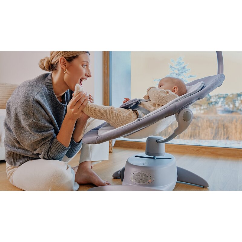 Confortul bebelusului este asigurat de perna moale din bambus, care ofera o pozitie ergonomica. Pentru a distra bebelusul, balansoarul are o bara de jucarie reglabila si pana la 12 melodii presalvate si 2 sunete ale naturii. Balansoarul poate fi, de asemenea, conectat la un dispozitiv exterior prin Bluetooth pentru a reda muzica selectata.