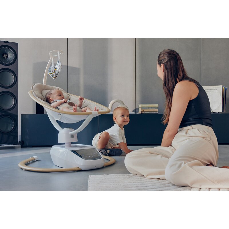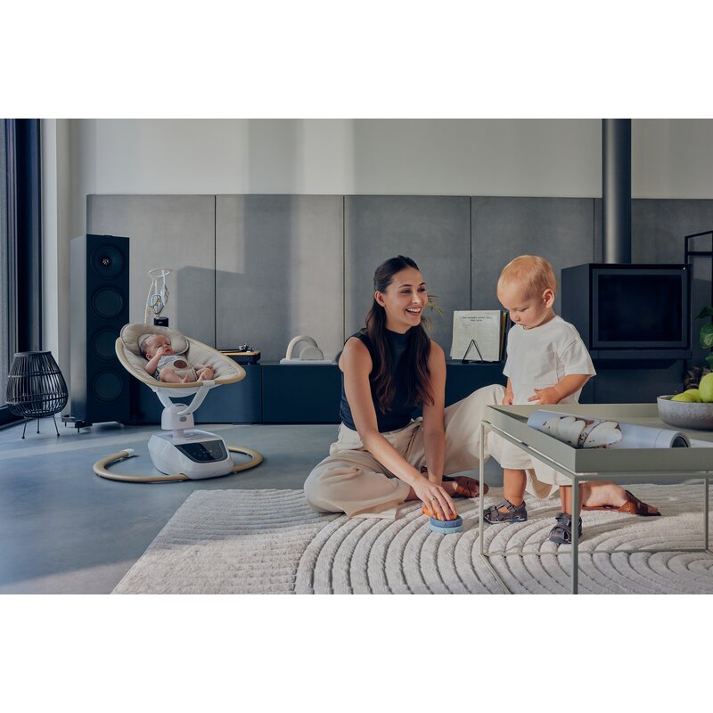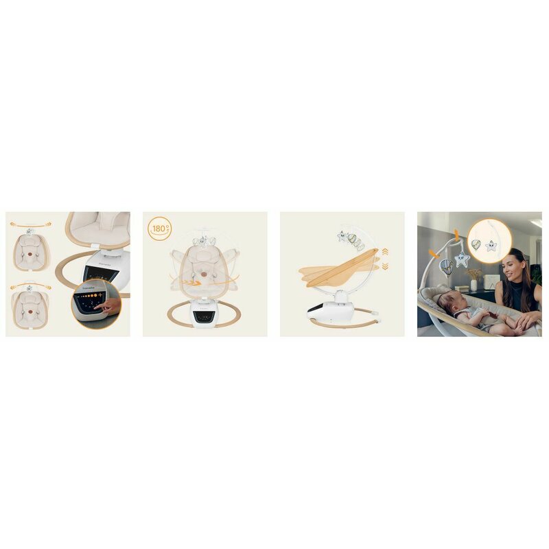 Scaunul se poate roti la 180, permitand un contact vizual usor intre copil si parinti. Acest lucru ajuta bebelusul sa se linisteasca si schimba, de asemenea, directia balansarii, oferindu-i o experienta noua.