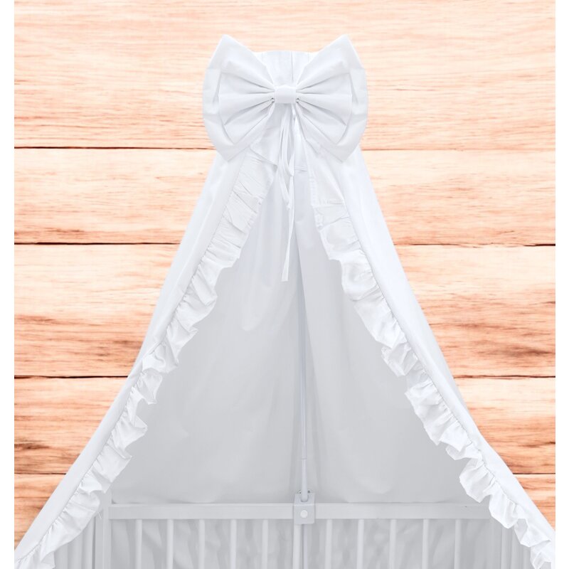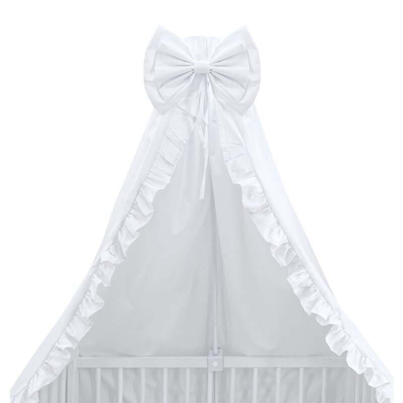 Baldachin, MimiNu, Din tull, pentru patut, cu funda si volan, 210x145 cm, Material certificat Oeko Tex Standard 100, Alb