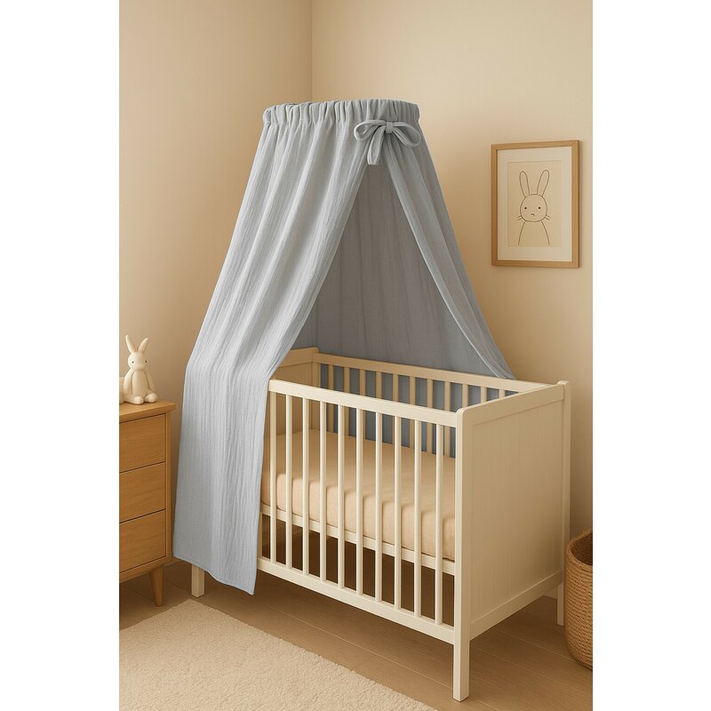 Transforma patutul sau leaganul bebelusului intr-un colt de poveste cu baldachinul Qmini confectionat din muselina dubla 100% bumbac premium. Elegant, functional si natural, acesta adauga o nota de rafinament camerei copilului si creeaza un spatiu calm si sigur pentru somn.