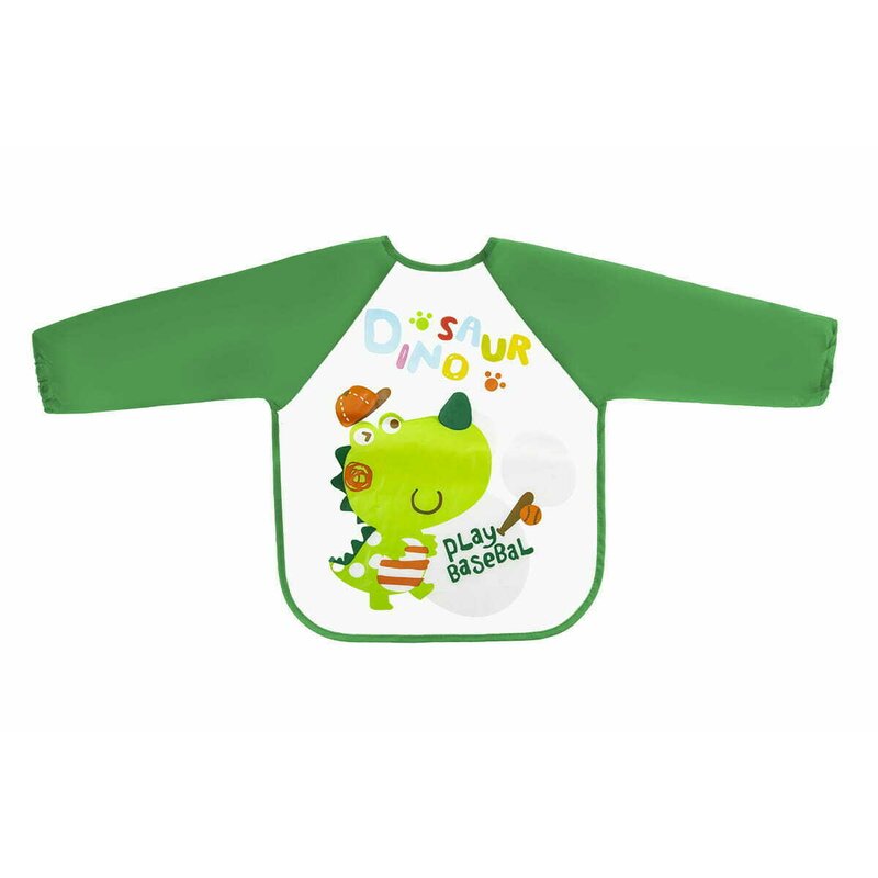 Baveta impermeabila, Bocioland, Cu maneci lungi, Dimensiune 40x35 cm, Dino