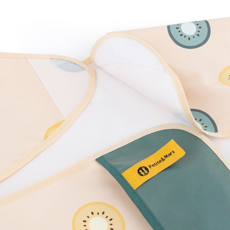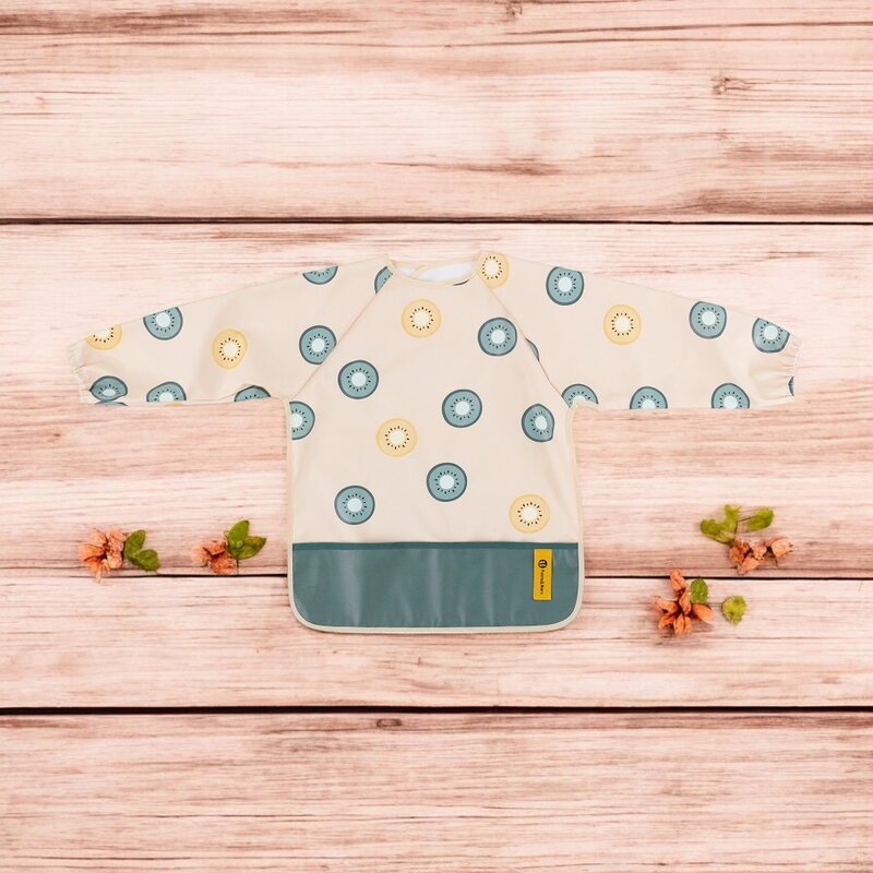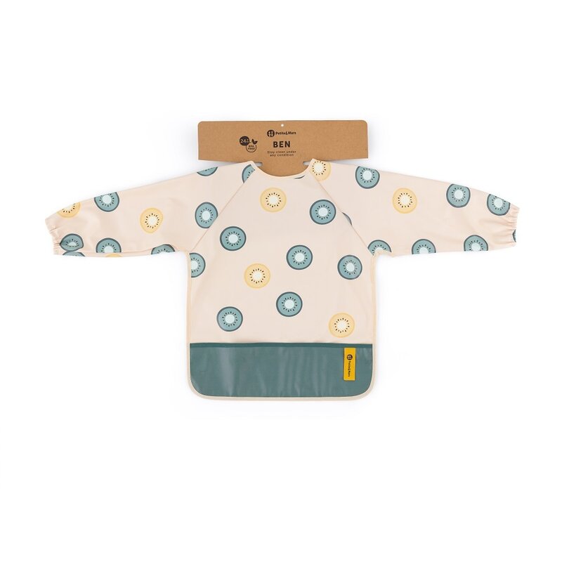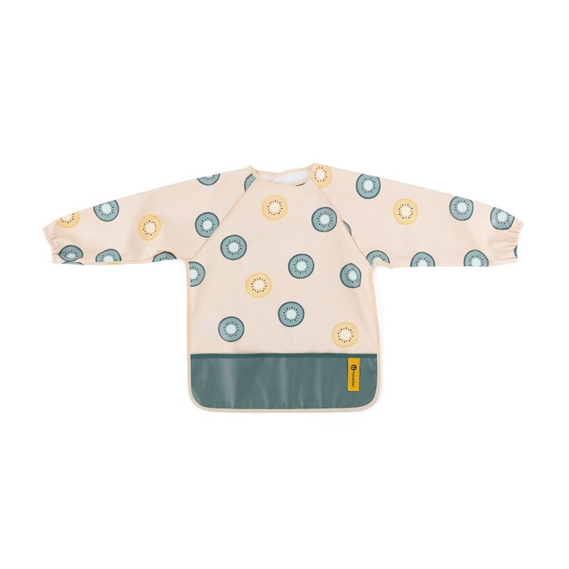 Baveta impermeabila, Petite&Mars, Cu maneci lungi, Usor de curatat, inchidere prin velcro, Dimensiune 38x42 cm, 24 luni+, Green Kiwi