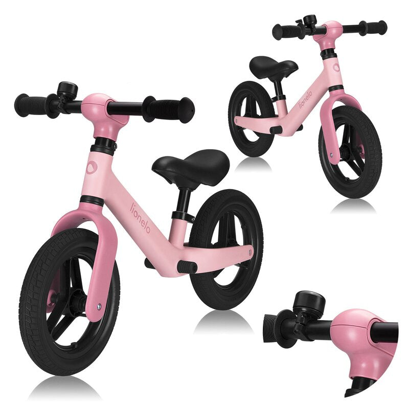 Bicicleta fara pedale, Lionelo, Toni, Cu ghidon si sa reglabile, Ultra usoara, 2.8 Kg, 18 luni+, Sustine 30 kg, Conform cu standardul EN71-1/2/3, Certificata TUV SUD, Roz