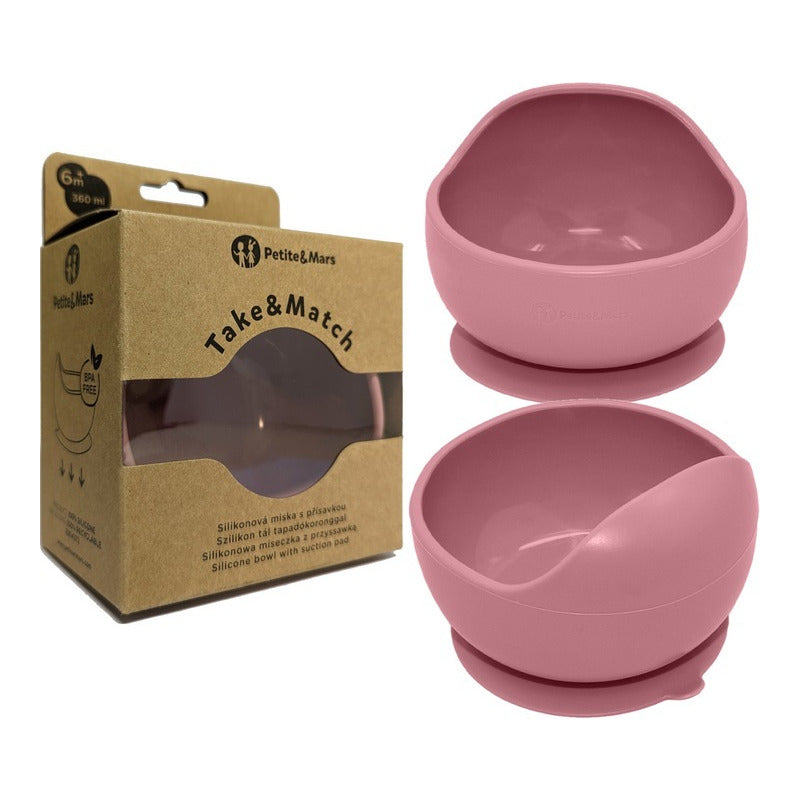 Bol, Petite&Mars, Take&Match, Din silicon, Cu ventuza, Fara BPA, 6 luni+, 350 ml, Roz