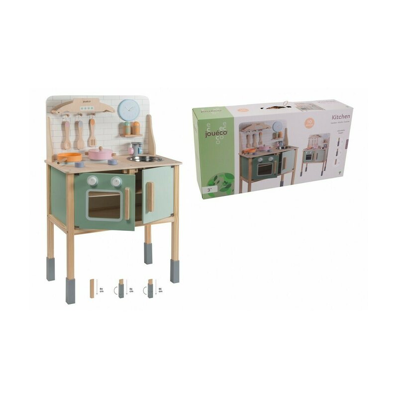 Bucatarie copii, Joueco, Din lemn certificat FSC, Cu accesorii, Reglabila pe inaltime, 86x56 cm, 3 ani+, Multicolor