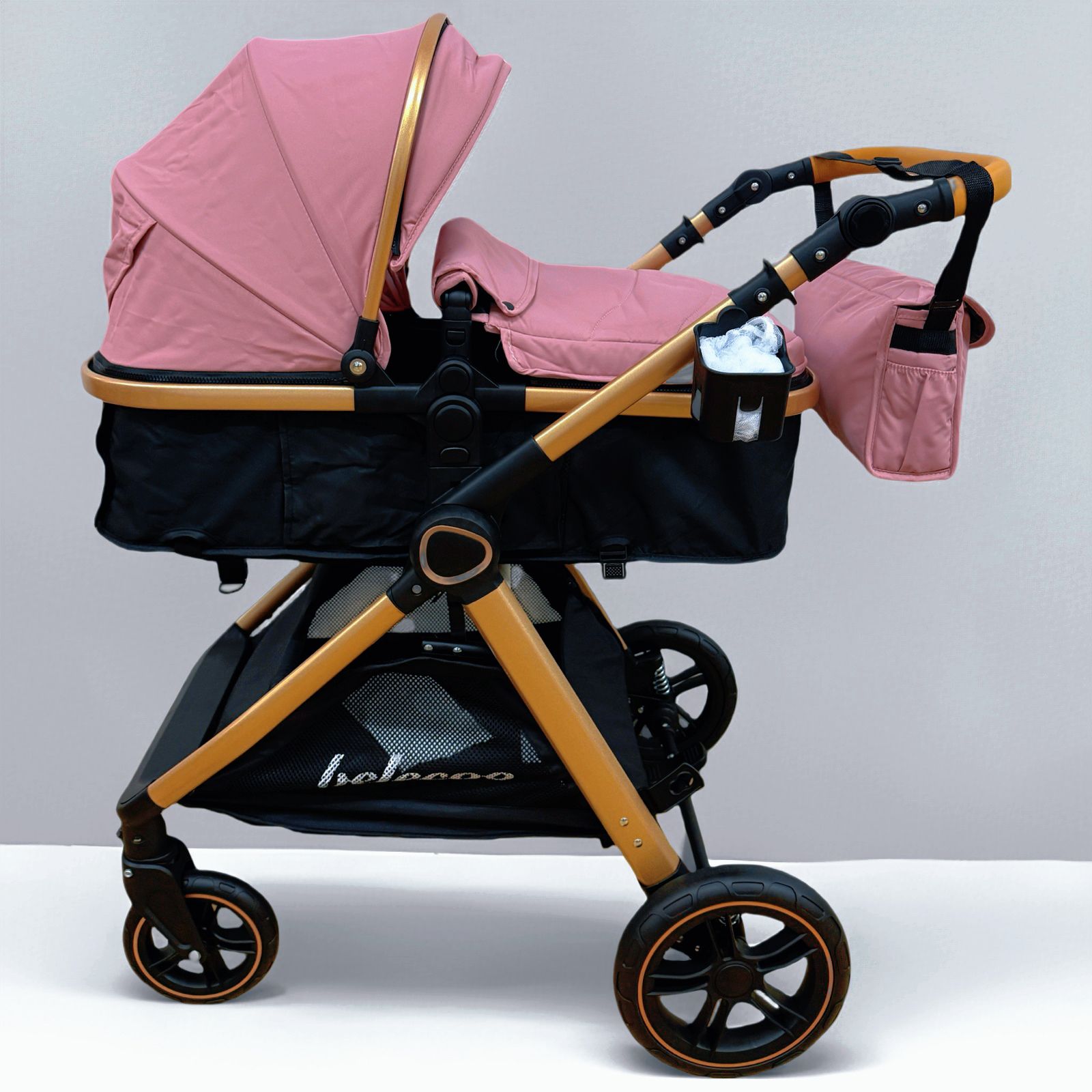 Carucior 2 in 1 Belecoo XID, cu inchidere compacta, 0-36 luni, reversibil Roz/ Negru