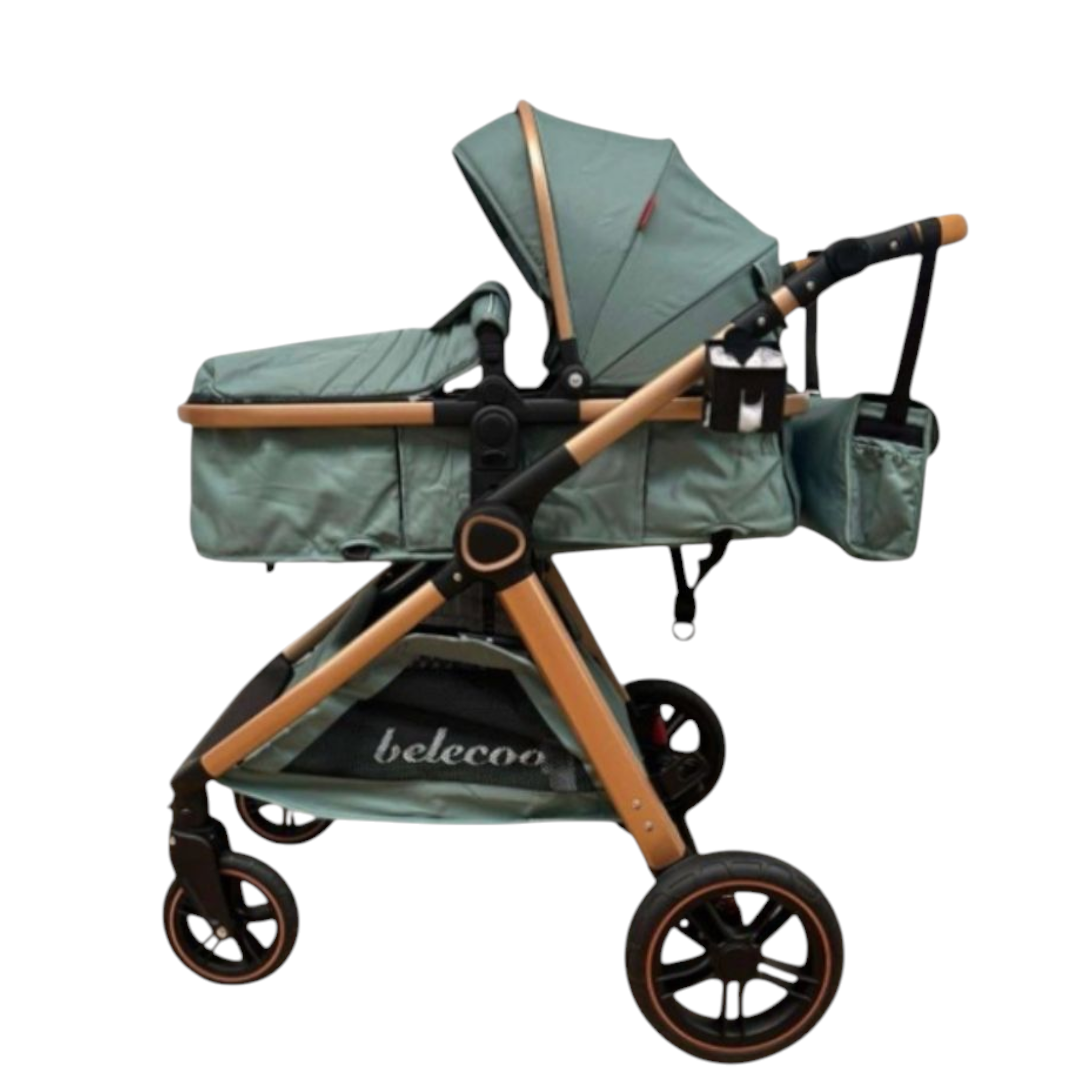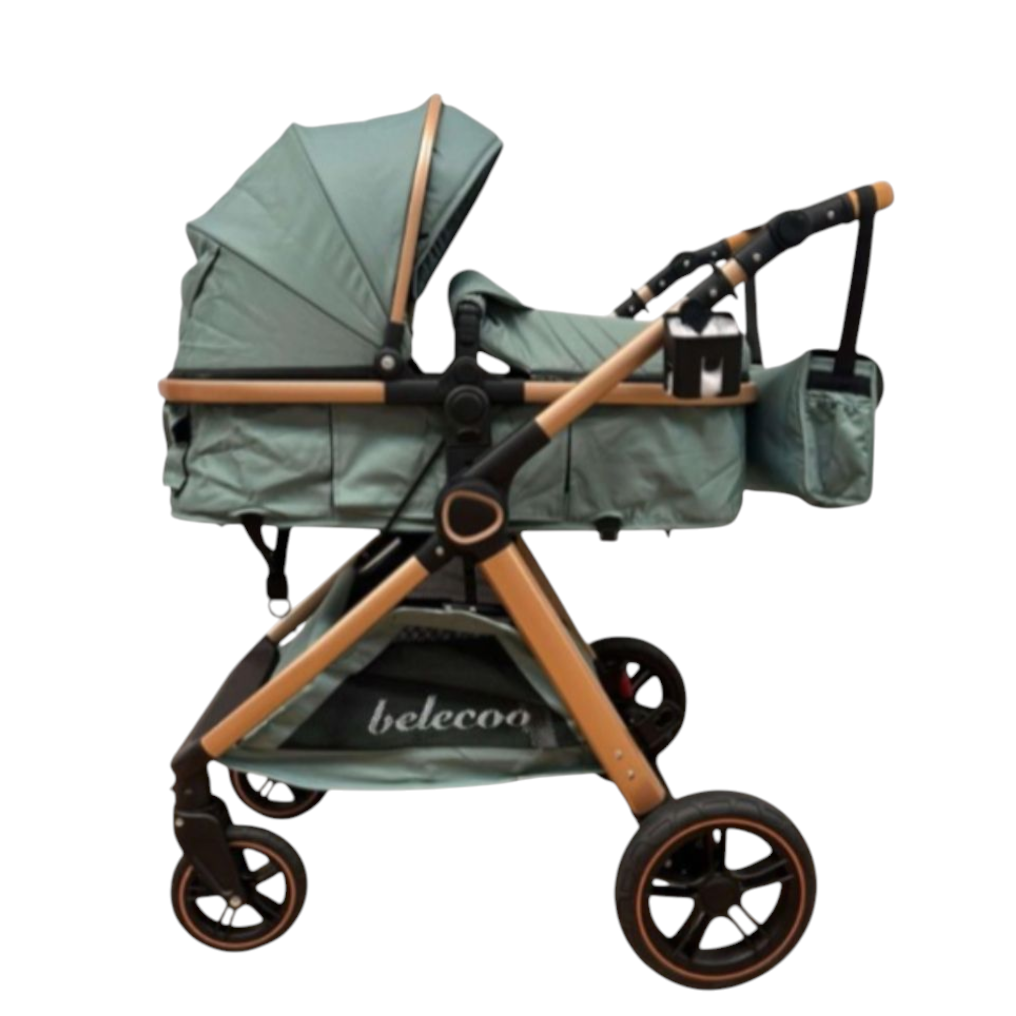 Carucior 2 in 1 Belecoo XID, cu inchidere compacta, 0-36 luni, reversibil Verde