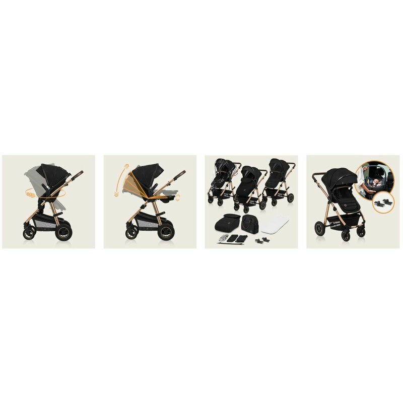 Carucior 2 in 1, Lionelo, Amber, Cadru aluminiu, Cu landou intarit si salteluta moale, Reversibil, Maner ajustabil, Huse pentru picioare, ploaie, Plasa de tantari, Geanta parinti, Pana la 22 kg, EN1888-1, EN1888-2, EN1466, Negru