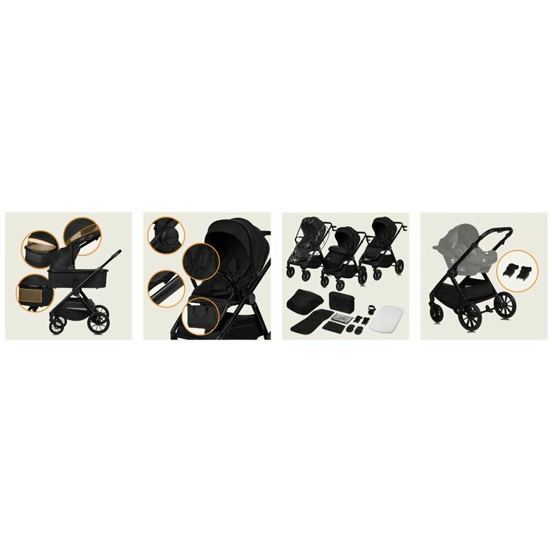 Carucior 2 in 1, Lionelo, Layla, Pana la 22 kg, Cadru aluminiu, Cu landou intarit si salteluta din spuma AirDots, Reversibil, Cu ventilatie 3D, Cu accesorii, EN1888-1, EN1888-2, EN1466, Negru