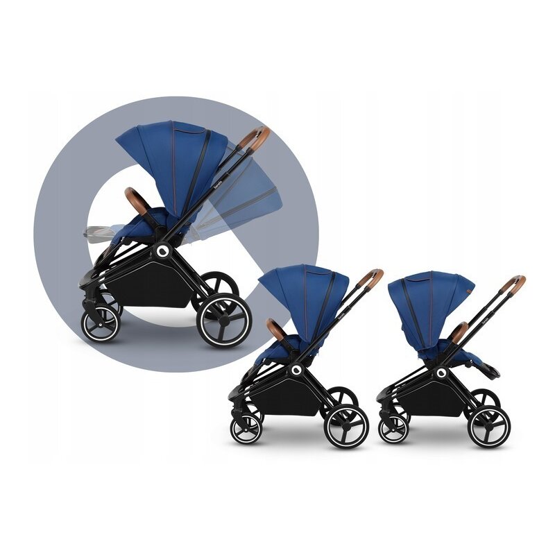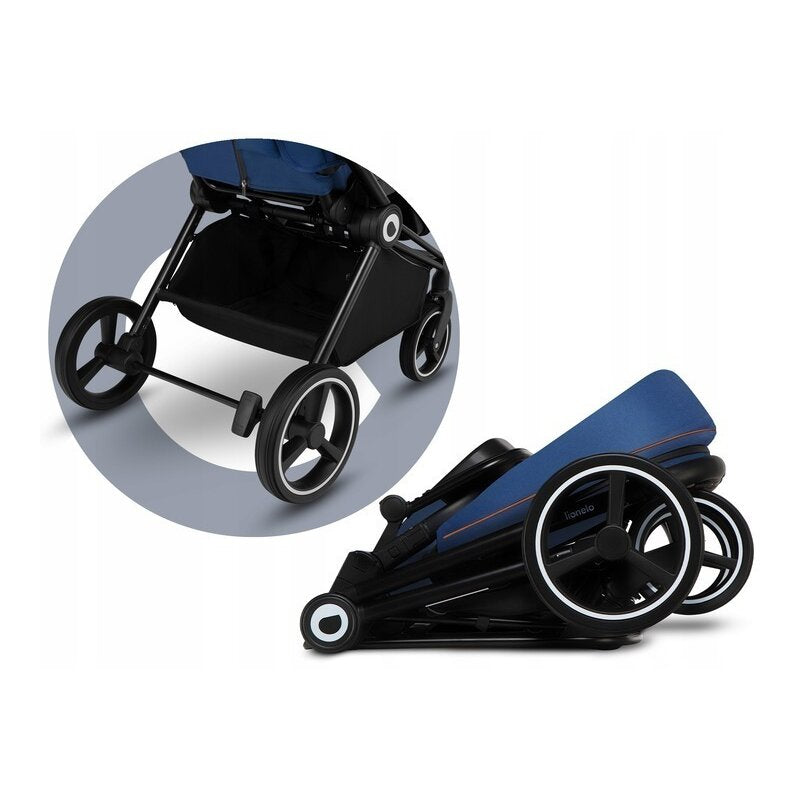Carucior 2 in 1, Lionelo, Mika, Cadru din aluminiu, Cu landou intarit si salteluta moale, Reversibil, Maner ajustabil, Plasa de tantari, Husa de ploaie, de picioare, 22 kg, Conform cu standardele europene de securitate EN1888-1 EN1888-2, EN1466, Albastru