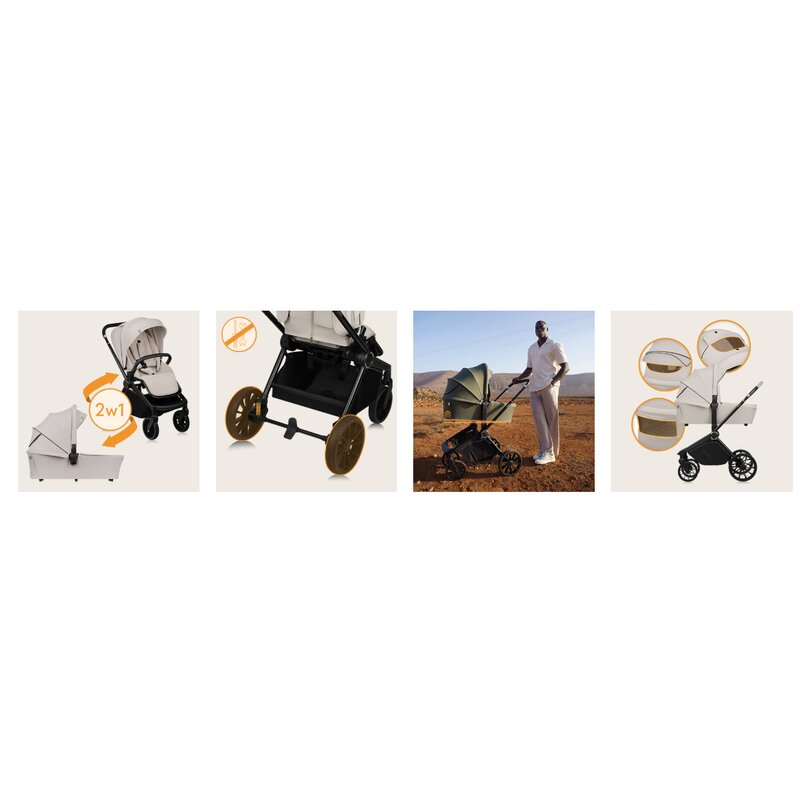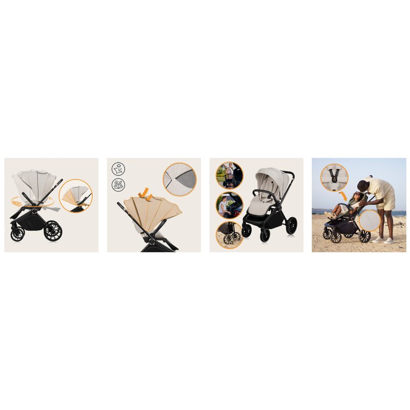 Carucior 2 in 1, Lionelo, Mika Plus, Cadru din aluminiu, Cu landou intarit si salteluta moale, Reversibil, Cu sistem de ventilatie 3D, Cu accesorii, Pana la 22 kg, Conform cu EN1888-1 EN1888-2, EN1466, Bej