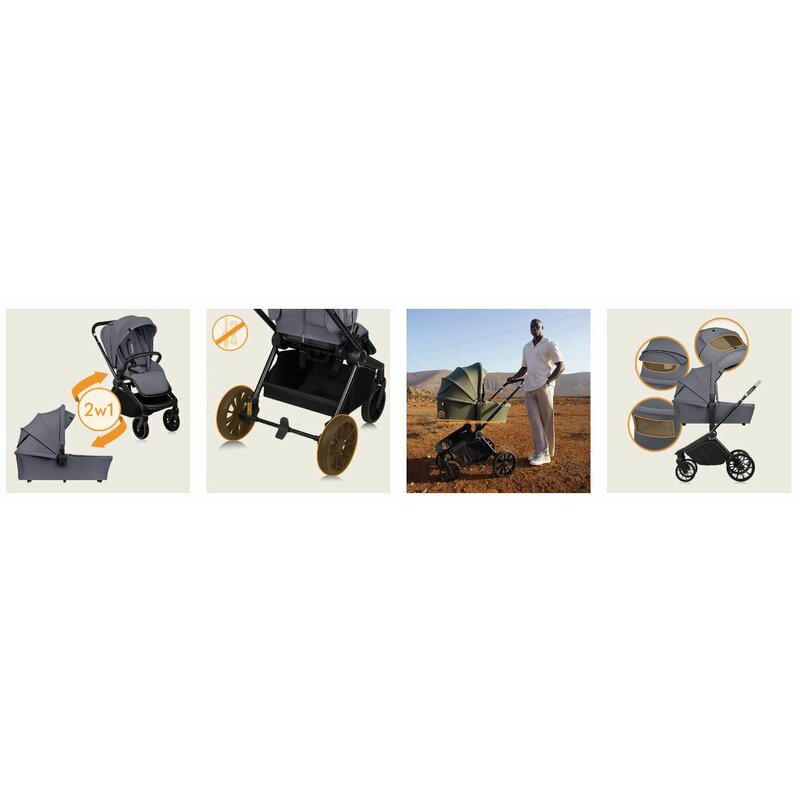 Carucior 2 in 1, Lionelo, Mika Plus, Cadru din aluminiu, Cu landou intarit si salteluta moale, Reversibil, Cu sistem de ventilatie 3D, Cu accesorii, Pana la 22 kg, Conform cu EN1888-1 EN1888-2, EN1466, Gri