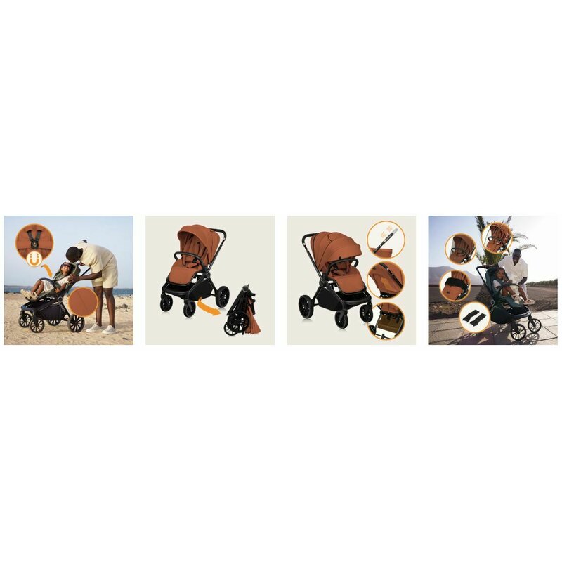 Carucior 2 in 1, Lionelo, Mika Plus, Cadru din aluminiu, Cu landou intarit si salteluta moale, Reversibil, Cu sistem de ventilatie 3D, Cu accesorii, Pana la 22 kg, Conform cu EN1888-1 EN1888-2, EN1466, Maro