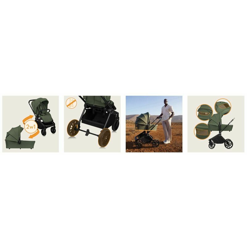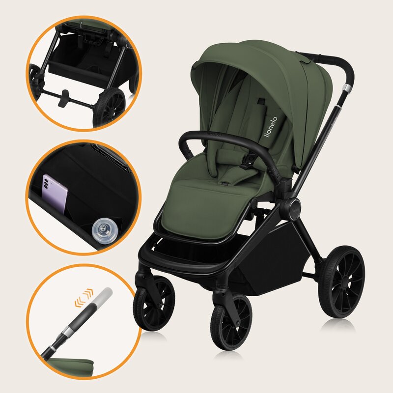 Carucior 2 in 1, Lionelo, Mika Plus, Cadru din aluminiu, Cu landou intarit si salteluta moale, Reversibil, Cu sistem de ventilatie 3D, Cu accesorii, Pana la 22 kg, Conform cu EN1888-1 EN1888-2, EN1466, Verde