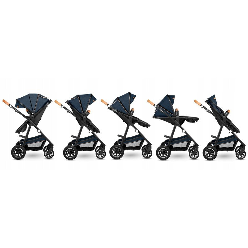 Carucior 3 in 1, Lionelo, Amber, Cadru aluminiu, Cu landou intarit si salteluta moale, Cu scoica auto testata ADAC, Reversibil, Cu accesorii, Geanta parinti, Pana la 22 kg, Albastru