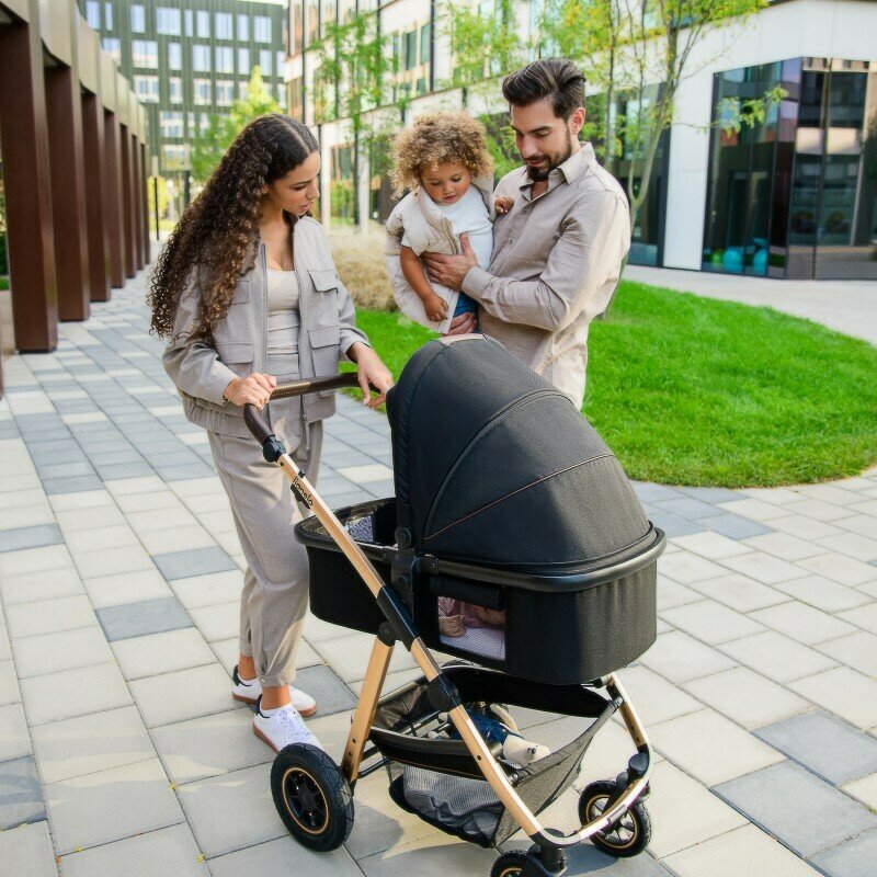 - Amber 3 in 1 contine un carucior spatios, cu un maner versatil pentru transport si o saltea moale, un landou spatios si un scaun sigur si confortabil pentru copii Astrid cu functie de transport.