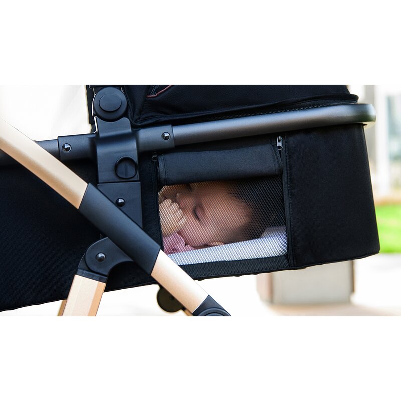 - Lionelo Amber 3 in 1 are o gama larga de accesorii, cum ar fi plasa de tantari universala si pelerina de ploaie, saculet pentru picioare, precum si saltea de infasat si o geanta practica montabila pe maner.