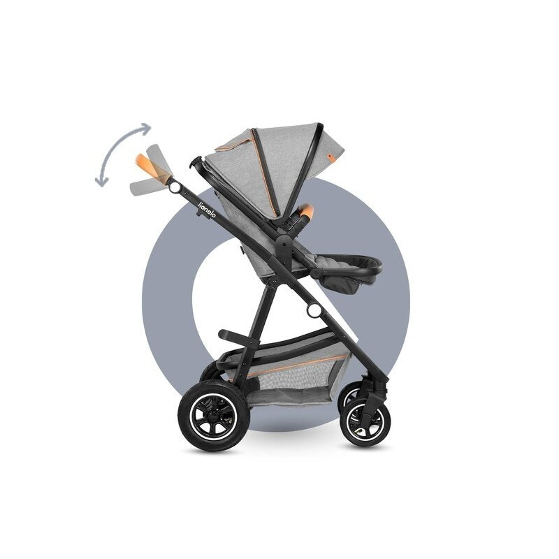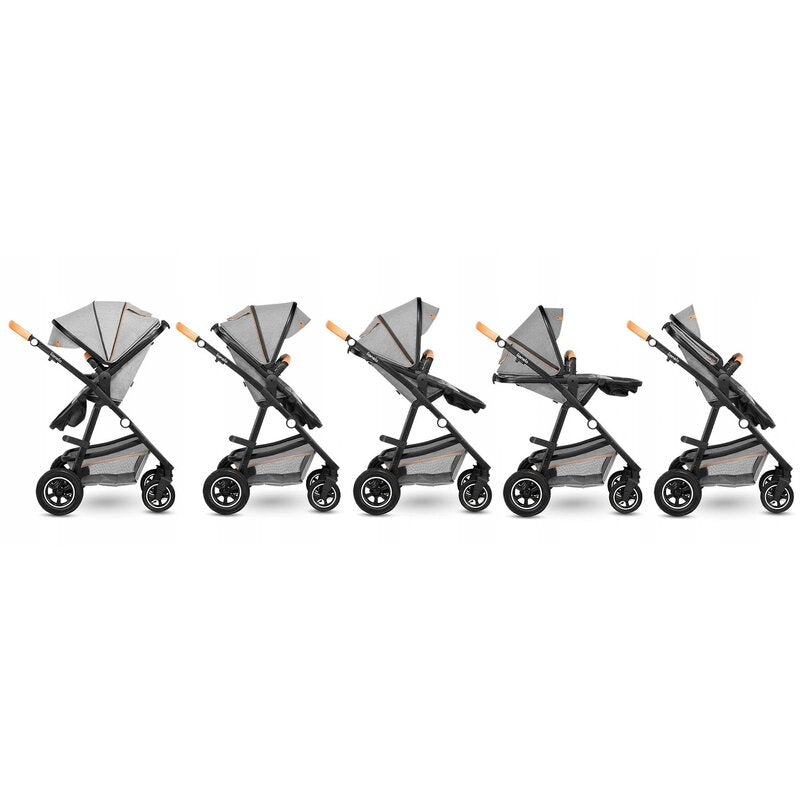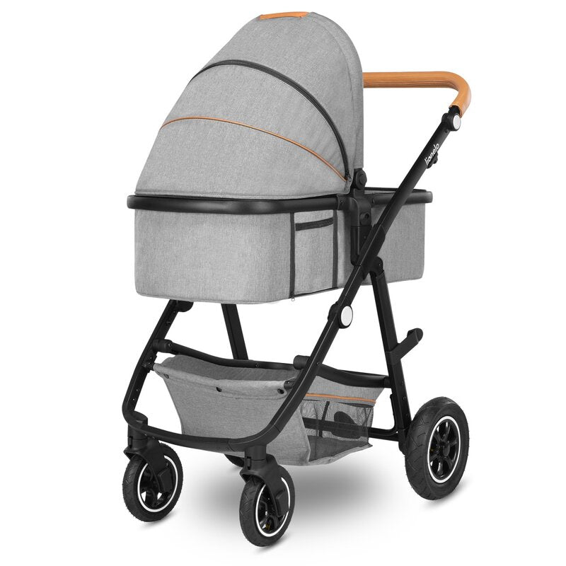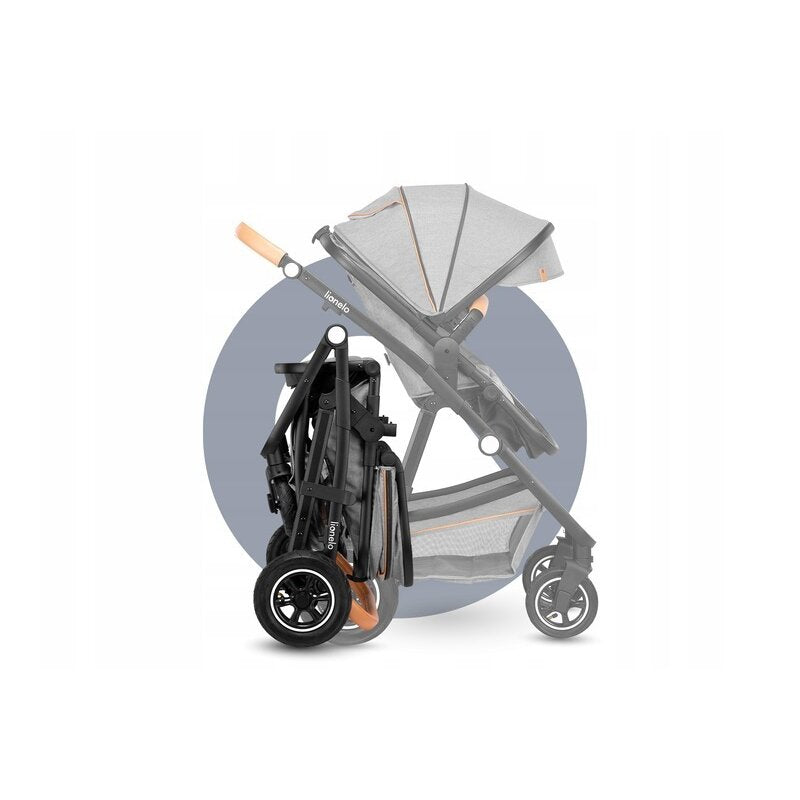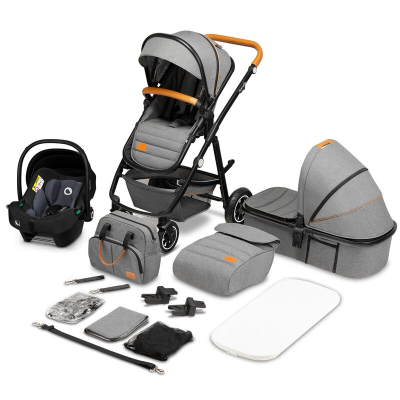 Carucior 3 in 1 Lionelo Amber, Cadru din aluminiu, Landou confortabil, Scaun auto testat ADAC, Accesorii incluse, Geanta parinti, pana la 22 kg, Certificat EN1888, Gri Deschis