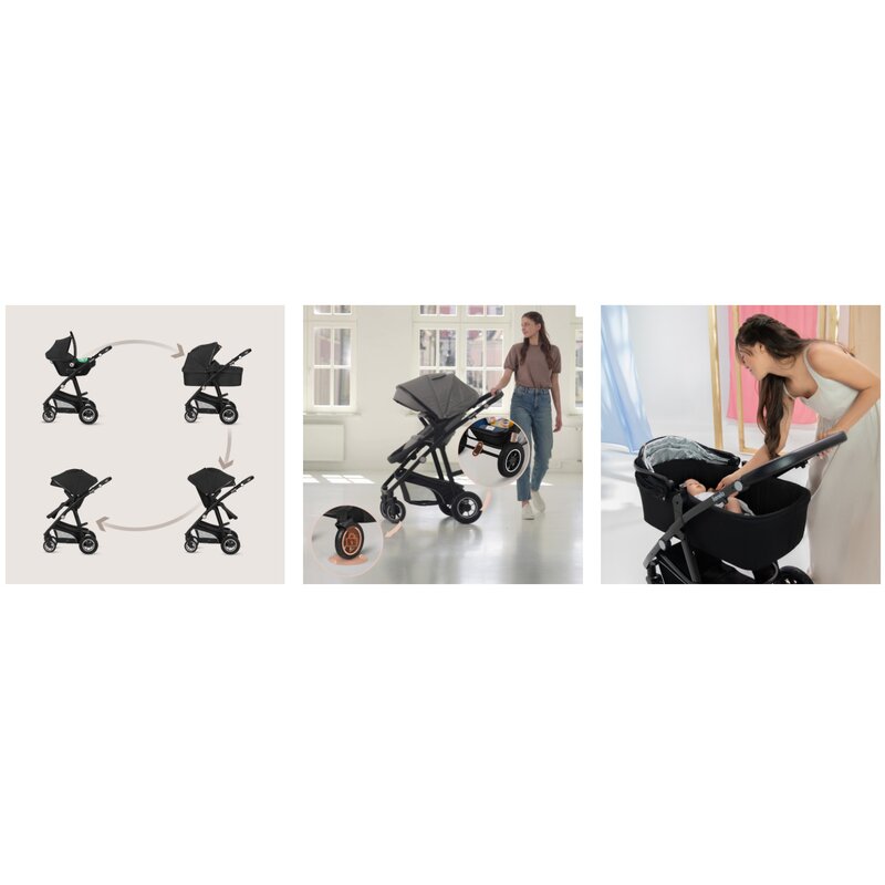 - Confort in timpul calatoriilor: Scaunul auto inclus poate fi transferat cu usurinta de la masina la cadrul caruciorului si invers, facand deplasarile mult mai convenabile.