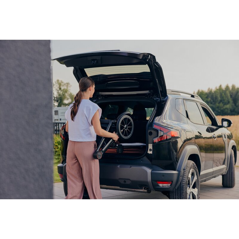 Potrivit pentru montare inainte sau inapoi, ofera mult spatiu si este ideal pentru somn, deoarece spatarul poate fi ajustat intr-o pozitie plana. Zona pentru picioare este captusita cu piele ecologica pentru curatare usoara. Plierea caruciorului este rapida si usoara, chiar si cu scaunul atasat nu trebuie sa indepartezi nimic! Toate curelele sunt dotate cu protectii impotriva frecarii.