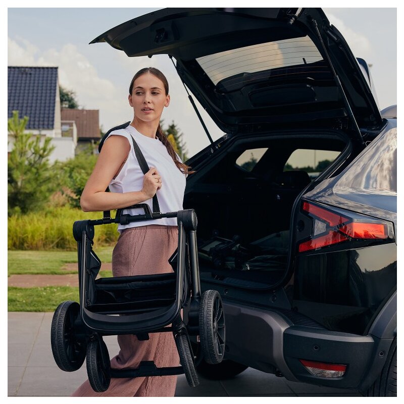 Cu un centru de greutate redus, caruciorul este incredibil de usor de manevrat, chiar si pe suprafete denivelate. Sistemul de pliere in 2 pasi face ca acest carucior sa fie foarte compact, incadrandu-se usor in portbagajele masinilor urbane. Poate fi pliat chiar si cu scaunul atasat, iar cureaua inclusa face transportul foarte usor. Manerul pentru parinti poate fi reglat in 3 inaltimi diferite pentru a asigura un confort maxim pentru oricare ingrijitor.