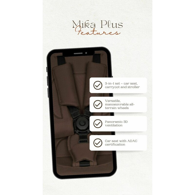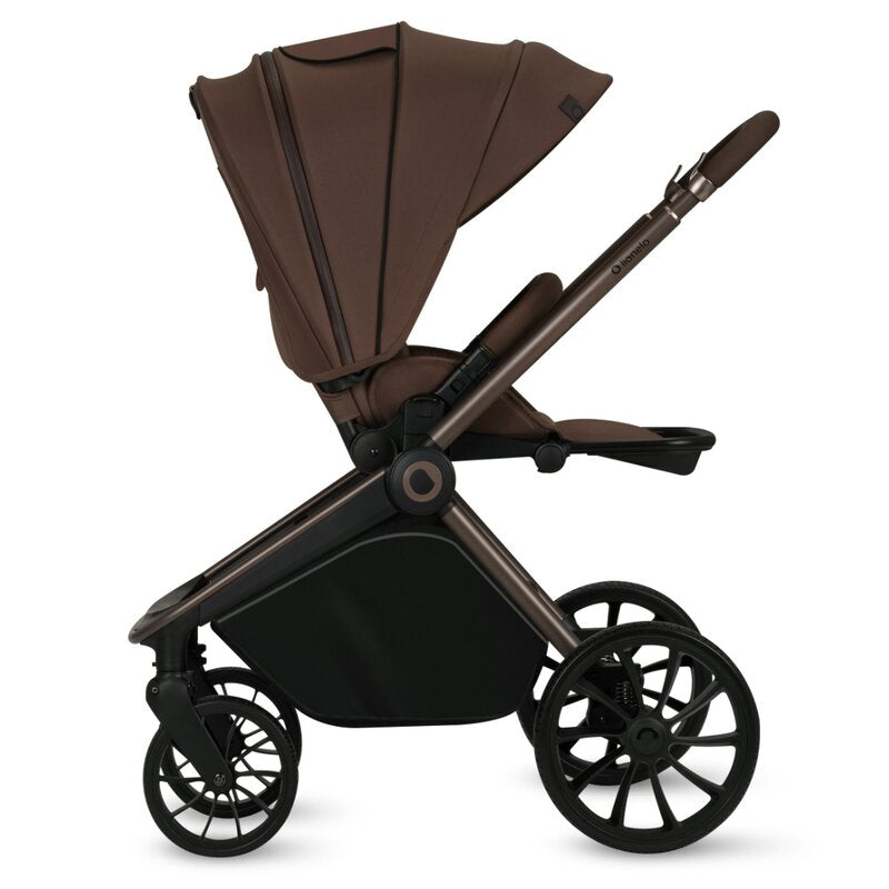 Carucior 3 in 1, Lionelo, Mika Plus, Cadru din aluminiu, Cu landou intarit si salteluta moale, Cu scoica auto testata ADAC, Reversibil, Cu sistem de ventilatie 3D, Cu accesorii, Pana la 22 kg, EN1888-1 EN1888-2 EN1466 ECE R129, Mocha Mousse