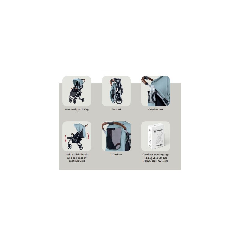 - Caruciorul Lux are un scaun frumos si spatios. Scaunul este reglabil convenabil si poate fi complet plat, astfel incat micutul tau sa poata sta confortabil in el. Suportul pentru picioare este, de asemenea, reglabil.
