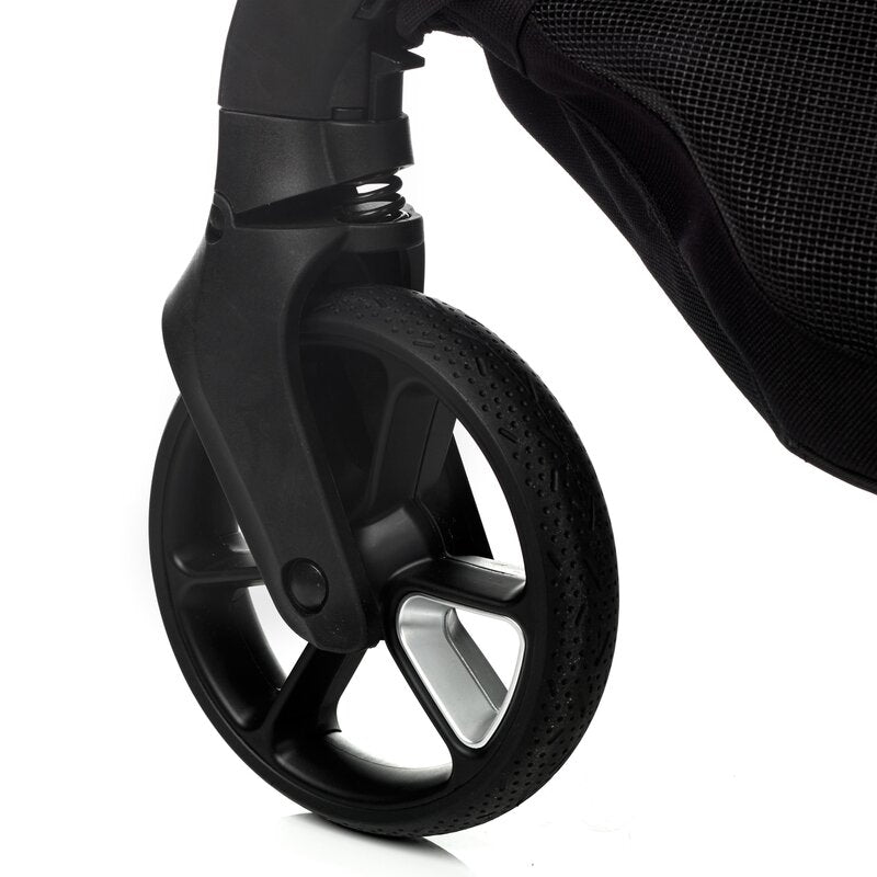 Rotile detasabile, cu blocaj pentru fata si roti spate mari de 24 cm, pentru stabilitate si manevrabilitate.