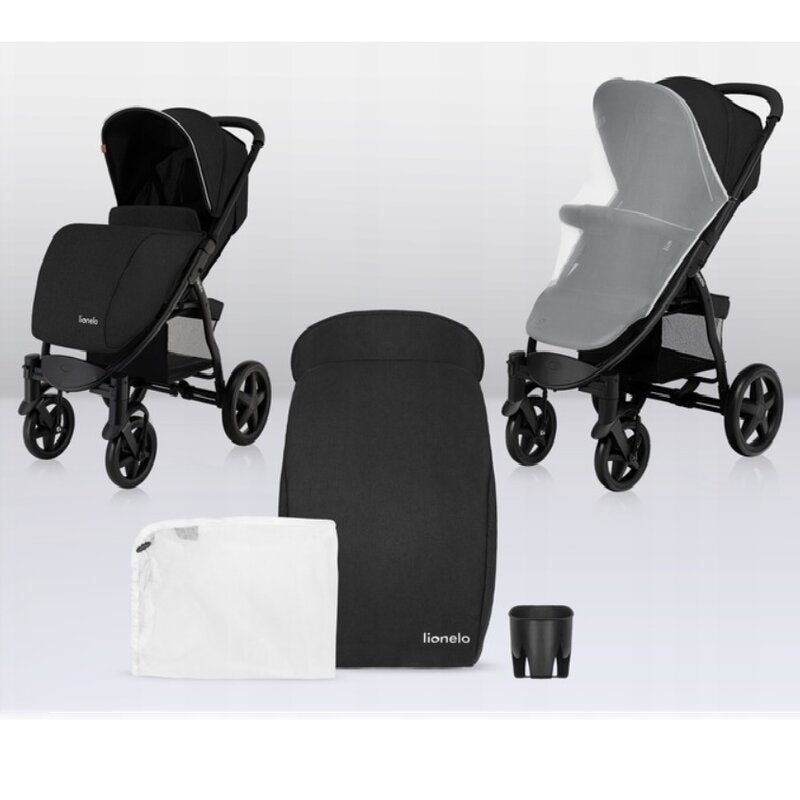 Carucior sport, Lionelo, Annet Plus, De la nastere, Cu accesorii si capotina XXL reglabila, 0 - 22 Kg, Conform cu standardele europene de securitate EN1888-1 si EN1888-2, Negru