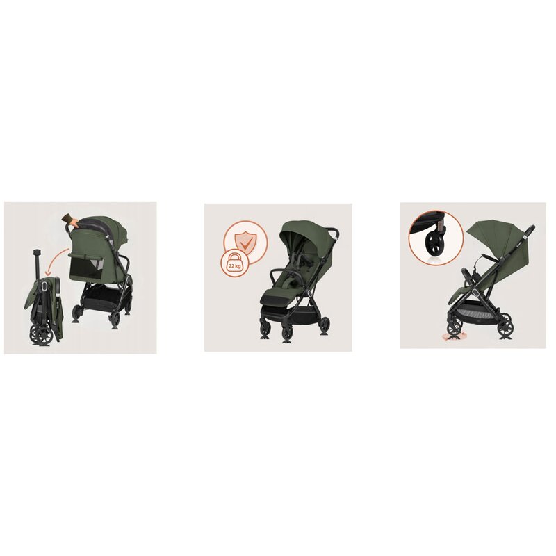 Carucior sport, Lionelo, Bess, Greutate redusa - 7.5 kg, Sustine 22 kg, 6 luni+, Capotina impermeabila, Protectie SPF 50+, Include suport sticla, Pliere cu o singura mana, Compact, Maner pentru transport, Conform cu EN1888-1 si EN1888-2, Verde