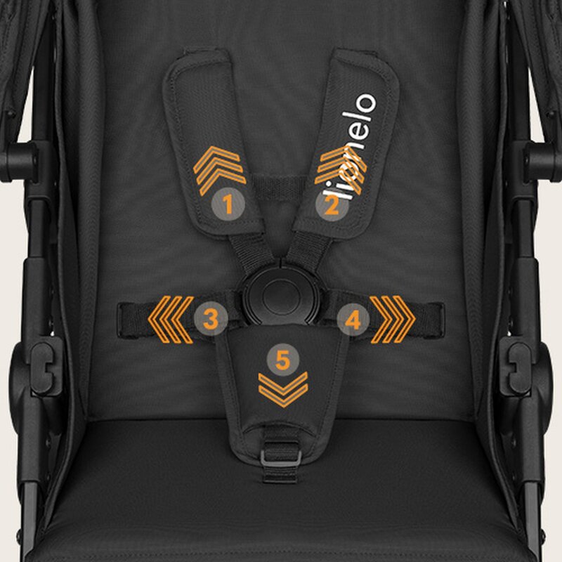 Copilul este securizat cu centuri reglabile in 5 puncte, care ofera protectie maxima. Centurile sunt echipate cu huse moi pentru a preveni iritatiile pielii.