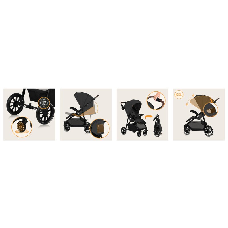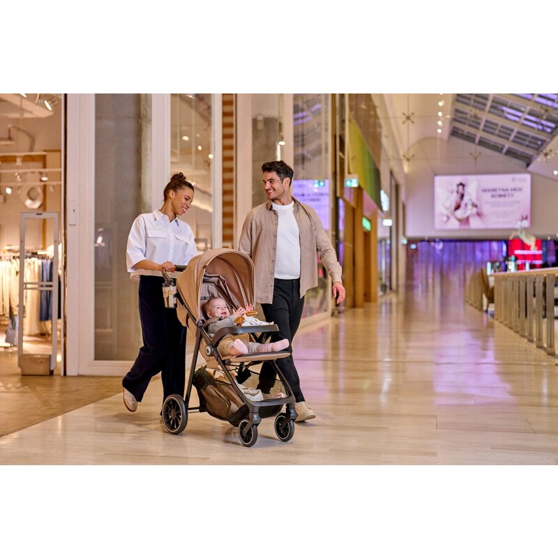 Bara frontala sub forma de tava ii permite copilului sa aseze o sticla, o gustare sau cateva jucarii preferate. Manerul reglabil pentru parinti garanteaza ergonomie maxima – acesta poate fi ajustat in functie de inaltime, astfel incat fiecare persoana sa poata impinge caruciorul in pozitie confortabila.
