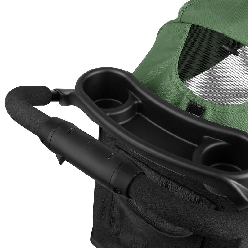Geanta practica poate fi atasata de manerul caruciorului, oferind un loc la indemana pentru a pastra lucrurile esentiale, cum ar fi gustarile. Buzunarul cu Velcro din spatele spatarului asigura acces rapid la obiecte precum cheile sau portofelul.