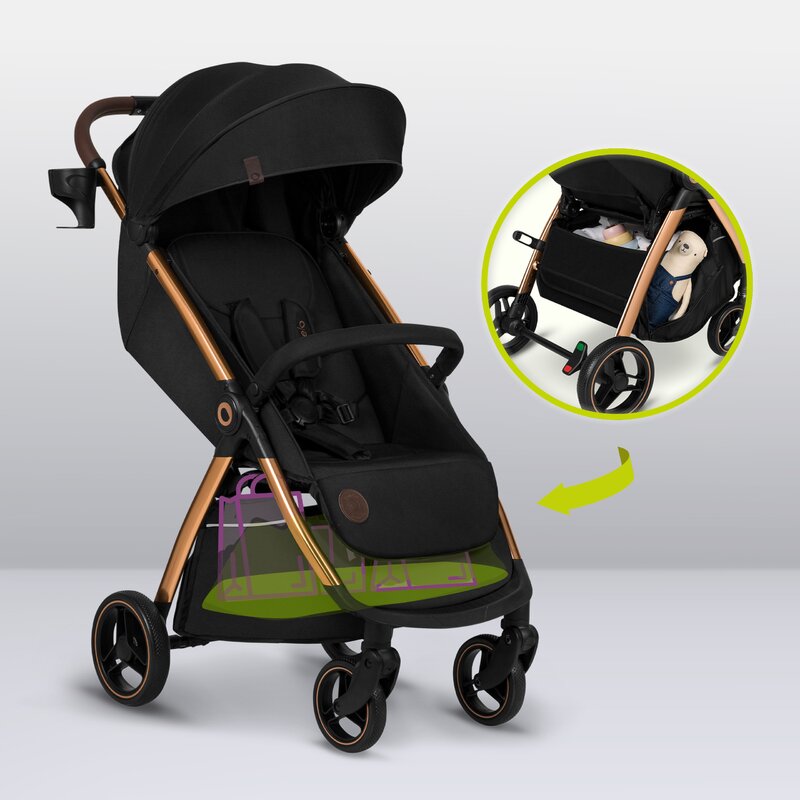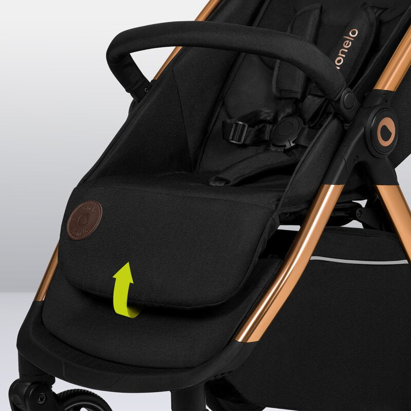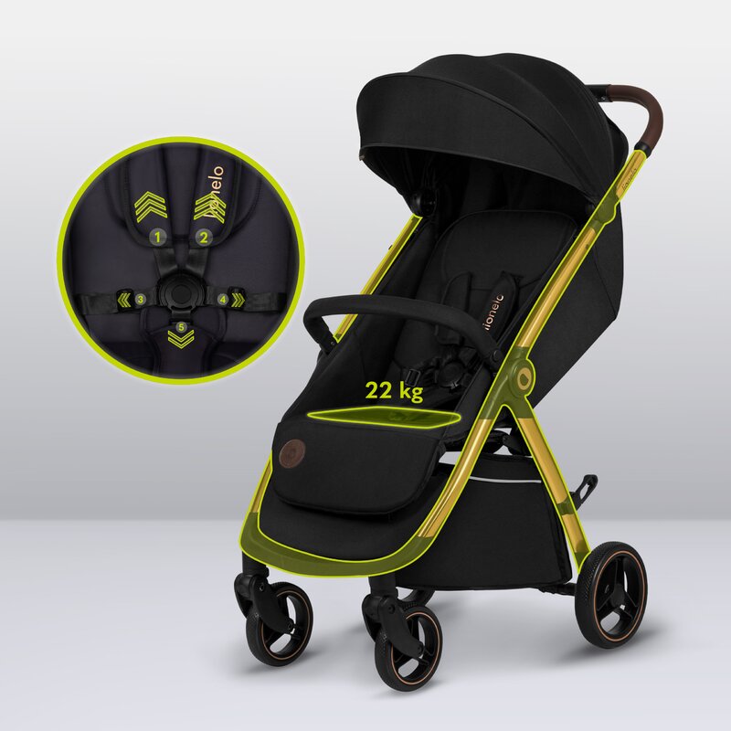 Carucior sport, Lionelo, Ingrid, Capotina impermeabila cu filtru UPF50+, Pana la 22 Kg, Spatar reglabil in 3 pozitii, Include suport pahar si plasa de tantari, Sistem pentru pliere automata, 6 luni+, Negru