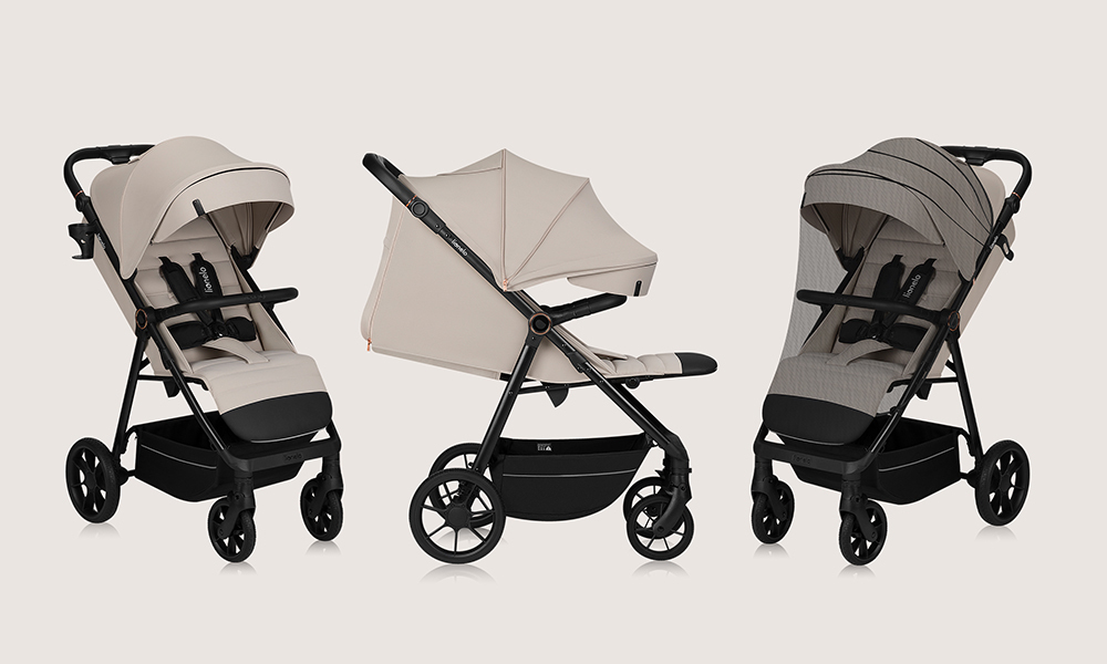 Țesăturile folosite la cărucior sunt materiale premium atent selectate. De asemenea, a fost acordată atenție detaliilor, de exemplu, mânerul este acoperit cu piele ecologică elegantă.