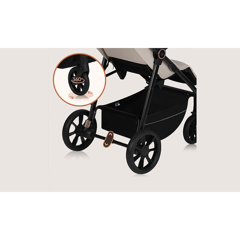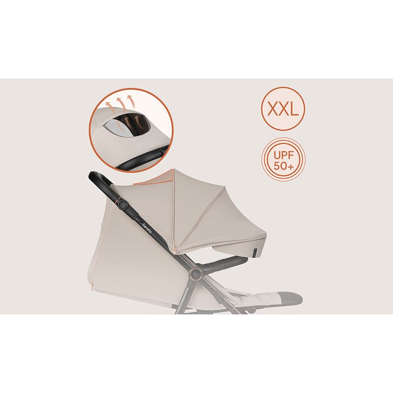 Carucior sport, Lionelo, Iva, Sustine 22 kg, 6 luni+, Capotina mare, Impermeabila, Protectie SPF 50+, 3 pozitii inclinare spatar, 8 pozitii inclinare suport picioare, 5 pozitii reglare maner, Include plasa de tantari si suport pentru biberon, Bej