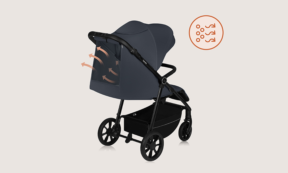 Panoul de ventilație din spatele spătarului poate fi deschis atunci când copilul doarme într-o poziție culcată. De asemenea, va circula aer curat în timp ce doarme.