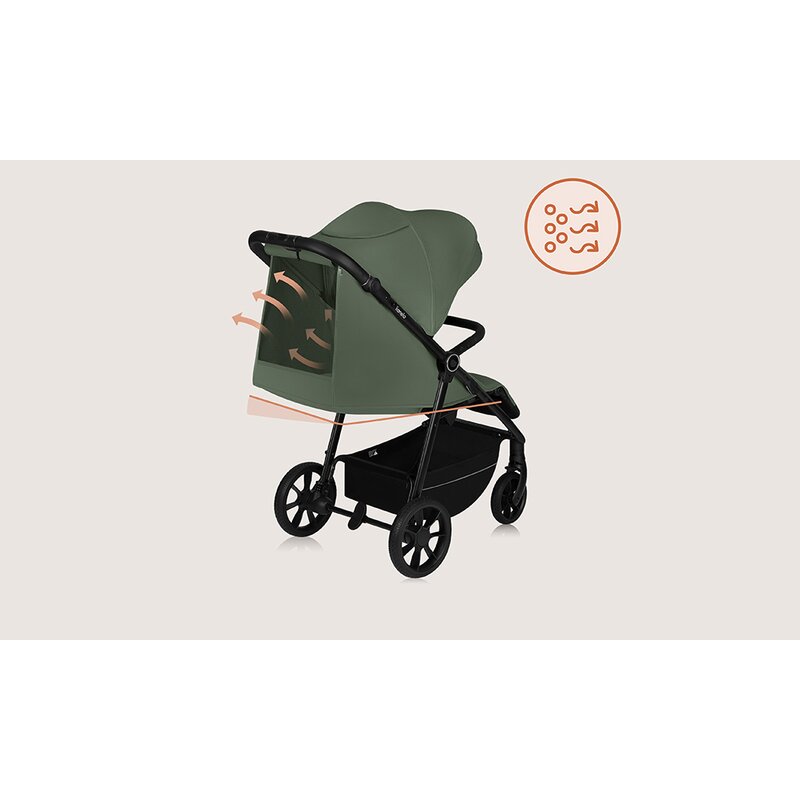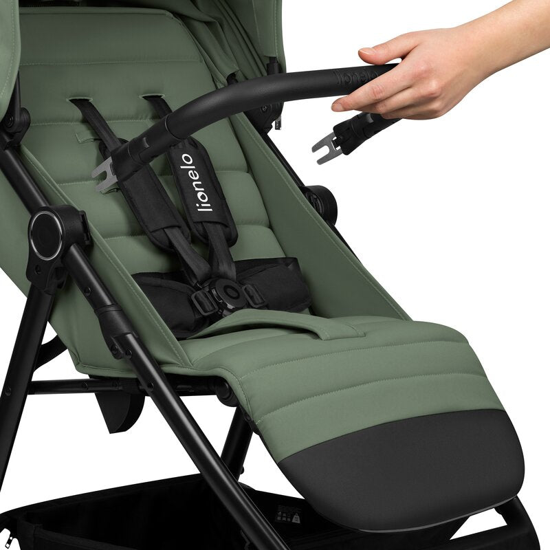 Carucior sport, Lionelo, Iva, Sustine 22 kg, 6 luni+, Capotina mare, Impermeabila, Protectie SPF 50+, 3 pozitii inclinare spatar, 8 pozitii inclinare suport picioare, 5 pozitii reglare maner, Include plasa de tantari si suport pt biberon, Verde