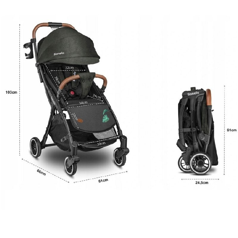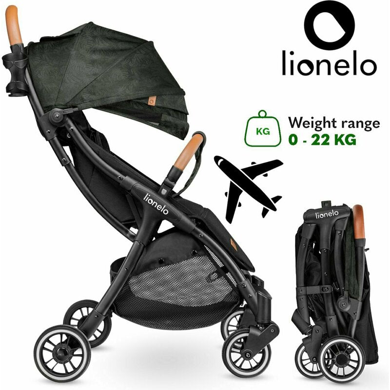 Carucior sport, Lionelo, Julie One, De la nastere, Greutate redusa, Cu accesorii, Cadru din aluminiu, 0-22 kg, Pliere compacta pentru avion, Conform cu standardele europene de securitate EN1888-1 si EN1888-2, Verde Tropical