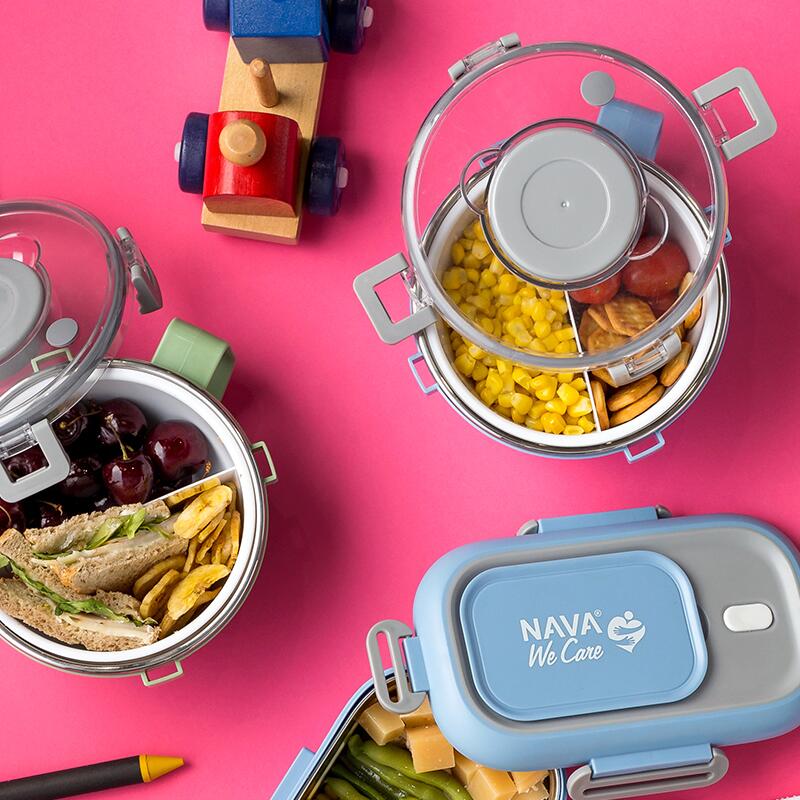 Cu recipientul pentru alimente din oțel inoxidabil Nava „We Care”, într-o culoare minunată, vă puteți bucura de mâncare sau gustare, oriunde v-ați afla. Este fabricat din otel inoxidabil. Fără BPA, PVC, ftalați sau alte substanțe nocive, este complet sigur pentru depozitarea igienică a alimentelor. Are o capacitate de 850 ml, iar în interior există un recipient de plastic detașabil cu 2 poziții pentru a vă separa alimentele atunci când este necesar. În același timp, este inclus și un mic recipient separat din plastic integrat în capac. Capacul cu 4 cleme de inchidere asigura o mai mare etanseitate. Cu acest recipient mancarea ta poate fi tinuta la cald timp de 2-3 ore in functie de temperatura exterioara, fiind solutia ideala pentru a-ti transporta mancarea in siguranta.Perfect pentru birou, școală, ieșire. Se poate spăla în mașina de spălat vase. Recipientul din oțel inoxidabil nu poate fi folosit într-un cuptor convențional sau cu microunde. Recipientul din plastic incorporat cu compartimentari este potrivit pentru cuptorul cu microunde.