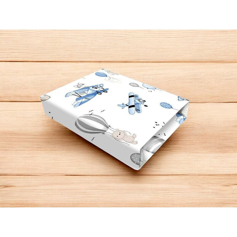 Cearceaf cu elastic, MimiNu, Pentru patut 120X60 cm, Din bumbac certificat Oeko Tex Standard 100, Blue Plane